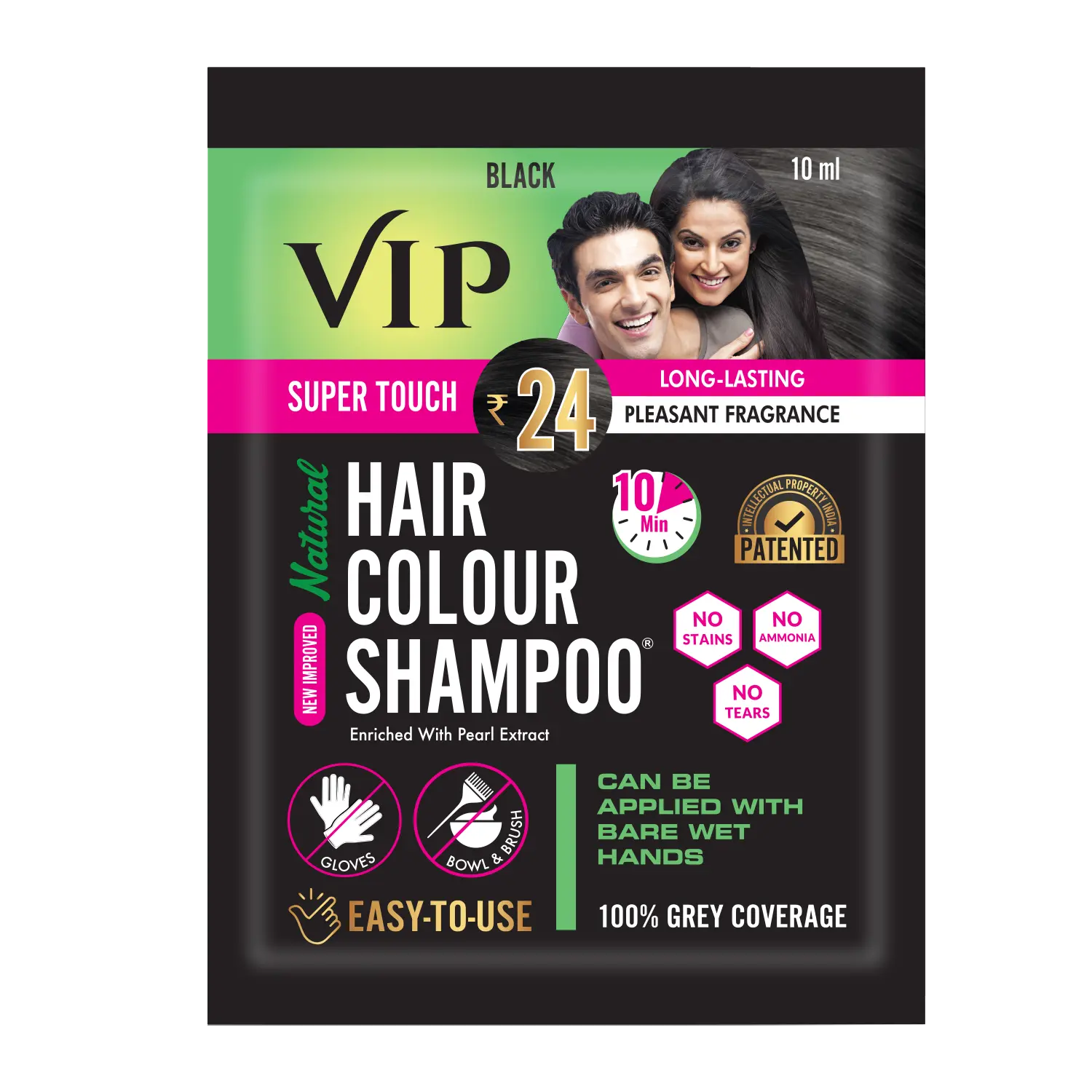 VIP Hair Colour Shampoo 10ml Black | Natural Black Permanent Hair color for men | 10 Minutes grey coverage shampoo